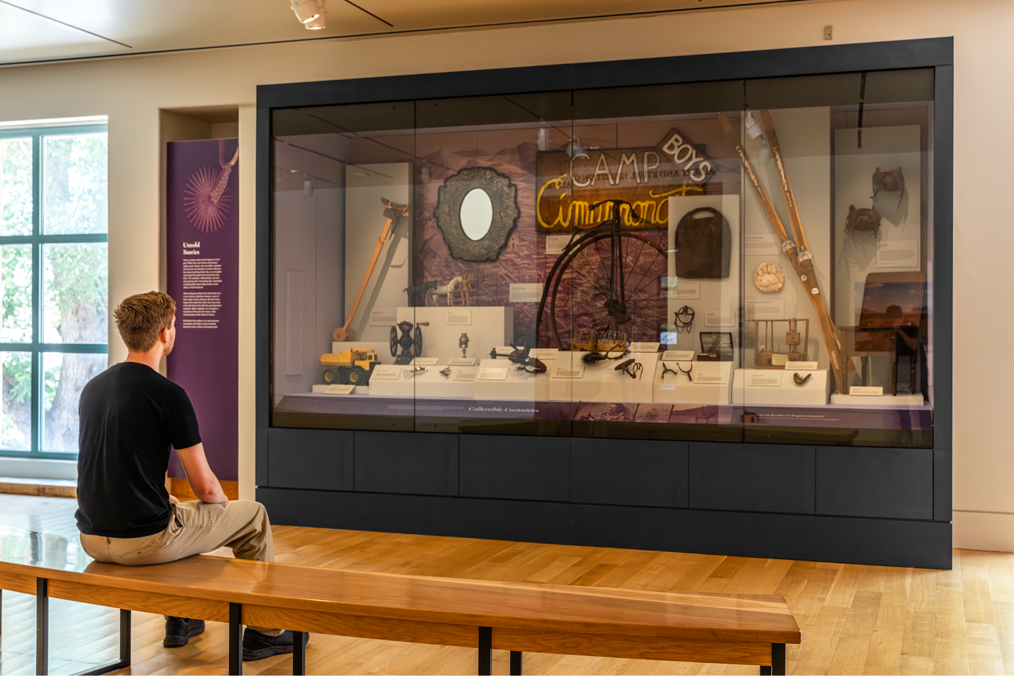 Our team collaborated with the museum to design The New Mexico Showcase—a pair of large display cases inspired by cabinets of curiosity. While our fabrication team engineered the physical structures, I led the design of the exhibit graphics, shaping the visitor experience through layout, typography, and interpretive design. The result is a refined presentation that connects historical artifacts with a contemporary visual language, inviting visitors to rediscover New Mexico’s stories through design and craft.